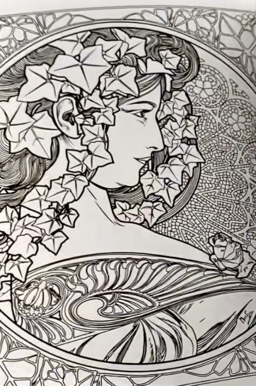 Alphonese Mucha colouring book