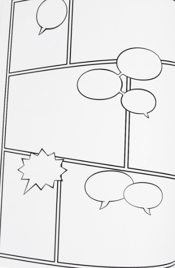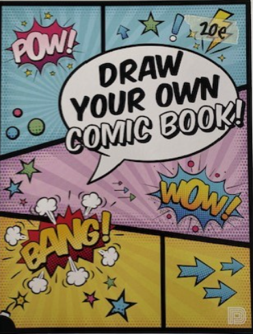 Draw Your Own Comic Book on väritys- tai piirrustuskirja joka sisältää tyhjiä ruutuja erikokoisilla puhekuplilla. Päästä mileikuvitus valloilleen!